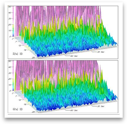내담자는 뇌파검사 당시 집중하지 못하고 눈깜빡임이 심하였으며 호흡이 짧고 뇌파가 불안정함을 볼 수 있었다.